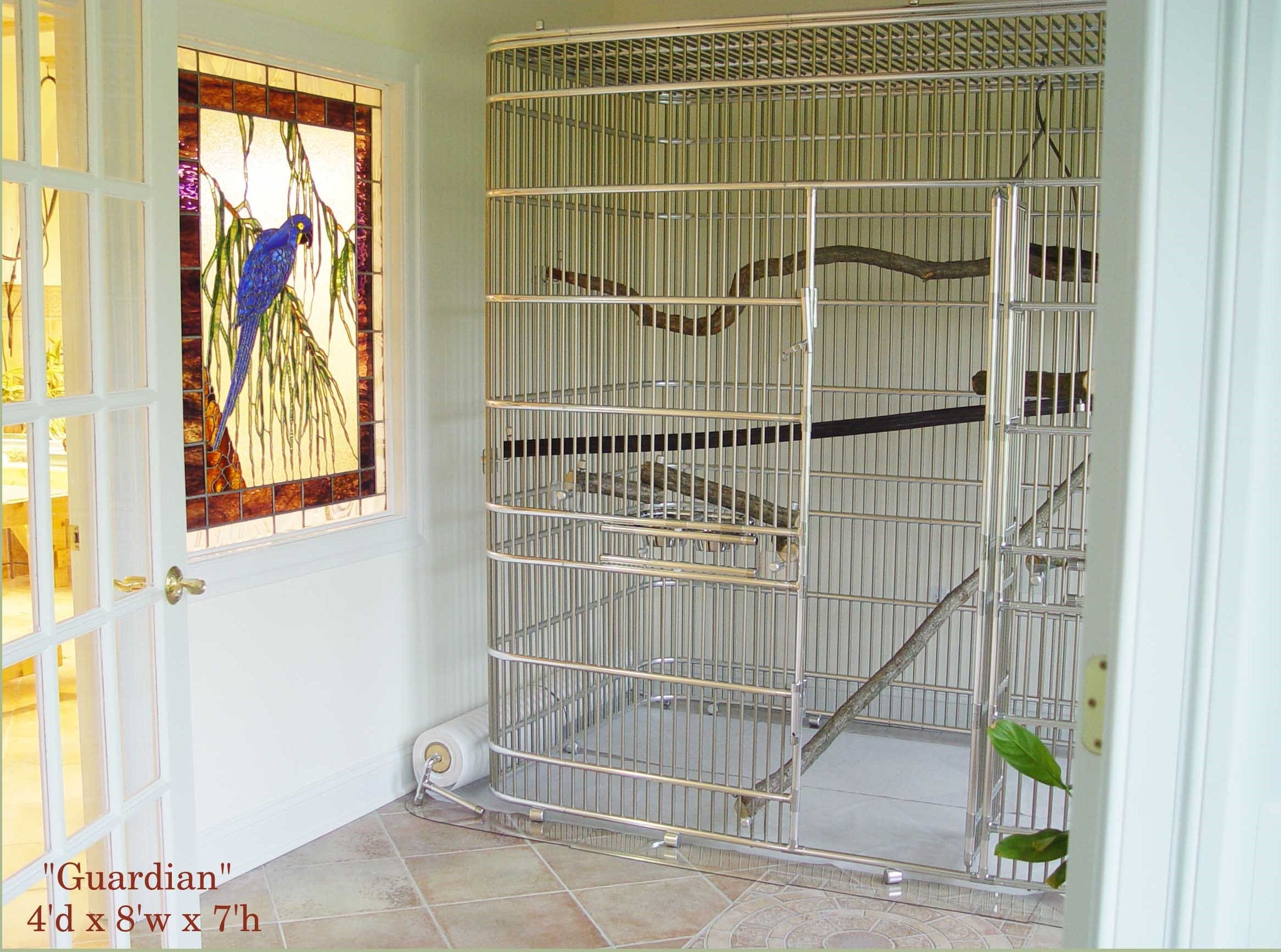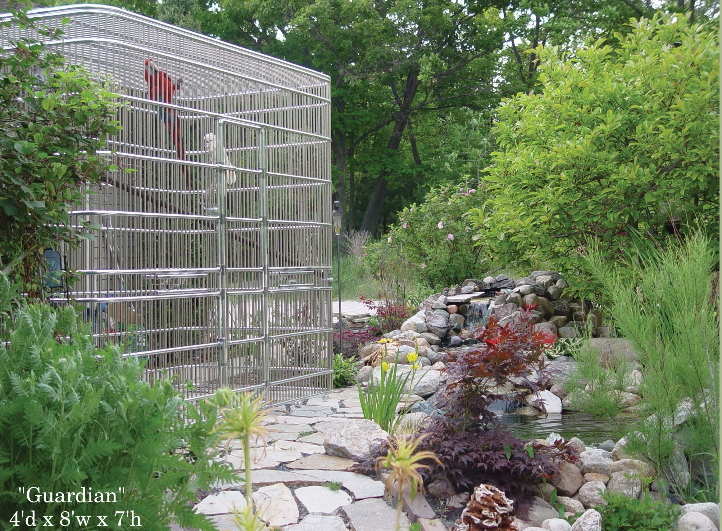 The unique feature of the “Guardian” Cage is the sleek, contemporary flat top. Each cage comes standard with one walk-in door and two rotating feeding centers.